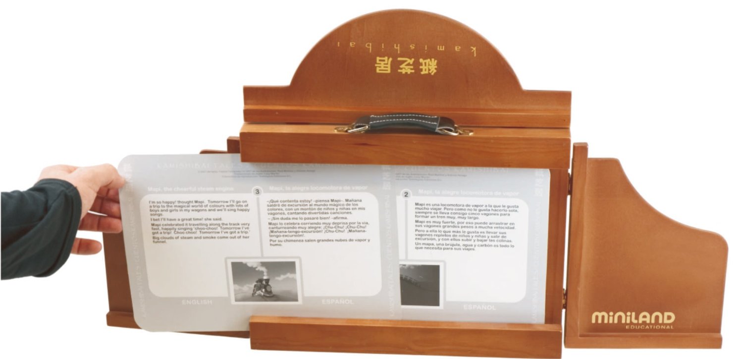 Teatret per a l'explicació de contes amb imatges que pot ser útil per treballar l'educació en valors. Kamishibai significa "teatre de paper" i és una forma molt popular des de fa segles d'explicar contes al Japó. El Kamishibai fascina a l'audiència. Les seves característiques i la forma de presentar-lo ajuden a aconseguir un efecte màgic i de concentració al voltant del conte. Es pot utilitzar a partir de P3. El seu format és un teatret de 60 x 40 cm, amb tres contes en làmines. Cada conte està format per una quinzena de làmines que es fan lliscar per l'escenari del teatre. Els contes són en català, castellà i anglès.